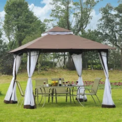¿Cansado del calor del verano o con miedo a que llueva en medio de tu celebración? Afortunadamente, Outsunny te tiene cubierto. Esta carpa es perfecta para organizar fiestas y eventos al aire libre. Con 4 paredes desmontables de tela mosquitera para proteger de los insectos, techo de poliéster y estructura de metal con patas regulables en altura. Ideal para tener un espacio a cubierta o sombreado para celebraciones familiares, comidas con amigos, etc.