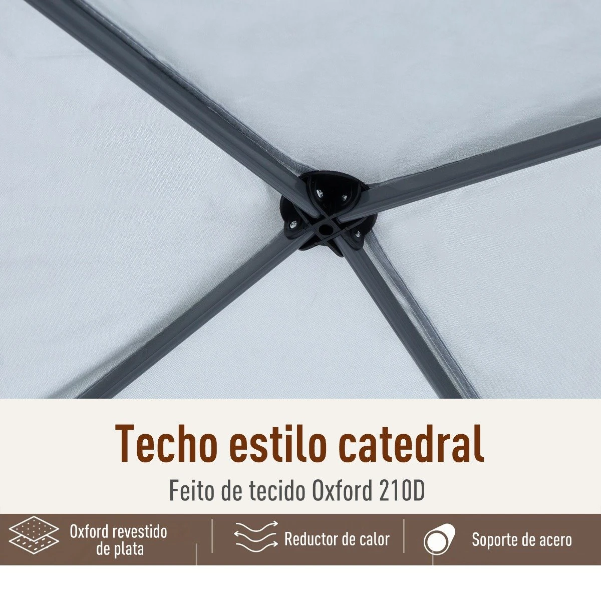 Esta carpa de Outsunny plegable es una buena opción para las comidas en verano y fiestas al aire libre. Con estructura plegable, se monta y desmonta fácilmente y viene con una bolsa para almacenar y transportar cómodamente. La estructura es de metal tratado para resistir a la intemperie, al polvo y a la corrosión. Con cubierta de tela Oxford y 4 paneles laterales que pueden plegarse con malla mosquitera, para resguardarse del viento y protegerse de los mosquitos en las noches de verano.
