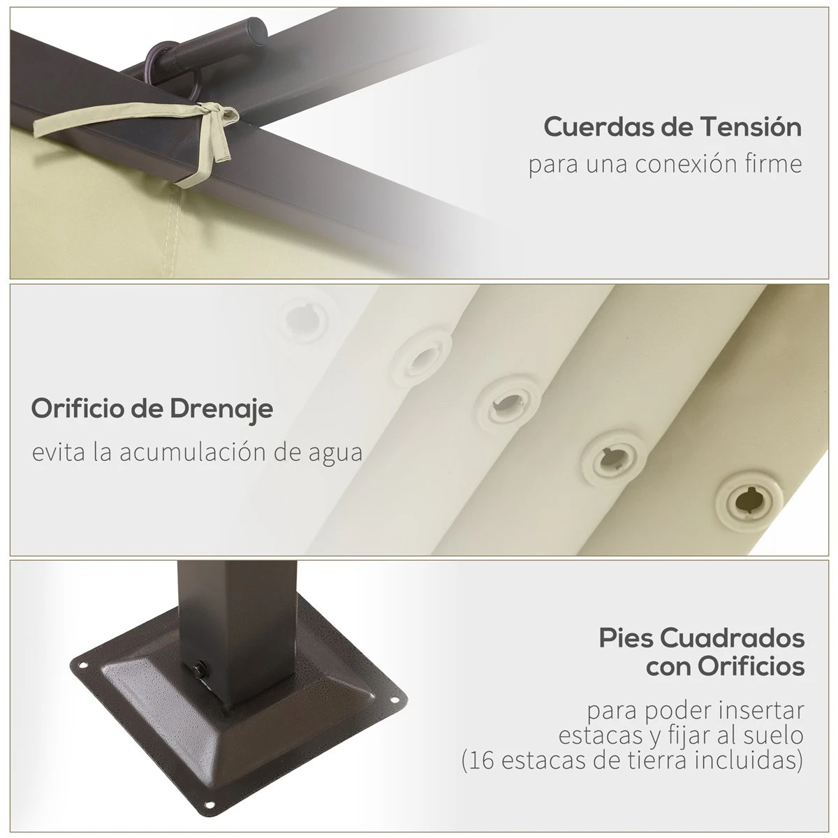 ¡Añade diseño y funcionalidad a tu espacio exterior con esta elegante Pérgola de Outsunny! Ofrece un espacio de 3.5 x 3.5m que puedes personalizar según tus necesidades o preferencias; puedes colocar una mesa para cenas al aire libre o bien un sofá para relajarte en tu zona exterior. La estructura es de acero antioxidante muy resistente y el toldo está diseñado para poderse abrir y cerrar fácilmente para dejar entrar la luz del sol o mantener el interior a la sombra. Esta pérgola es perfecta para dar una zona más acogedora en tu jardín, patio o terraza. ¡Disfruta del aire libre con esta moderna carpa exterior!