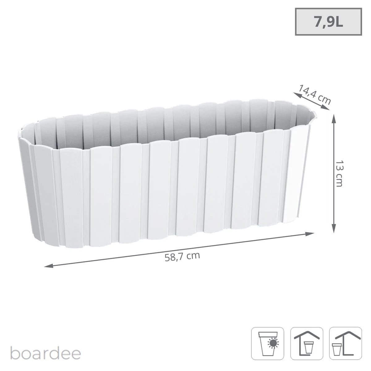 Jardinera para balcón de la colección BOARDEE BASICDimensiones: 587x144x130Blanco