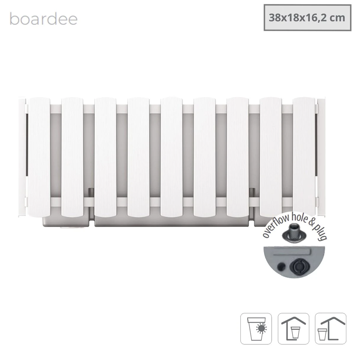 Prosperplast Jardinera Para Balcón BOARDEE FENCYCASE, Dimensiones (mm) 380x180x162, Color Blanco