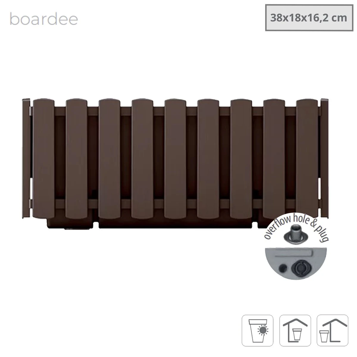Prosperplast Jardinera Para Balcón BOARDEE FENCYCASE, Dimensiones (mm) 380x180x162, Color Marrón