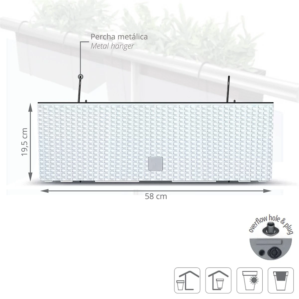 Jardinera Para Balcón De La Colección Rato Case W_x000D_Dimensiones: 580X180X195_x000D_Blanco_x000D_Incorpora Ganchos Para Sujetarse Firmemente A Barandillas