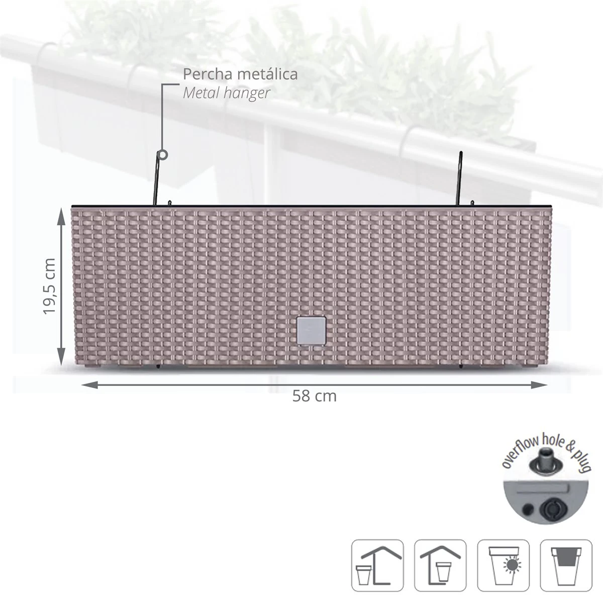 Jardinera Para Balcón De La Colección Rato Case W_x000D_Dimensiones: 580X180X195_x000D_Mocca_x000D_Incorpora Ganchos Para Sujetarse Firmemente A Barandillas